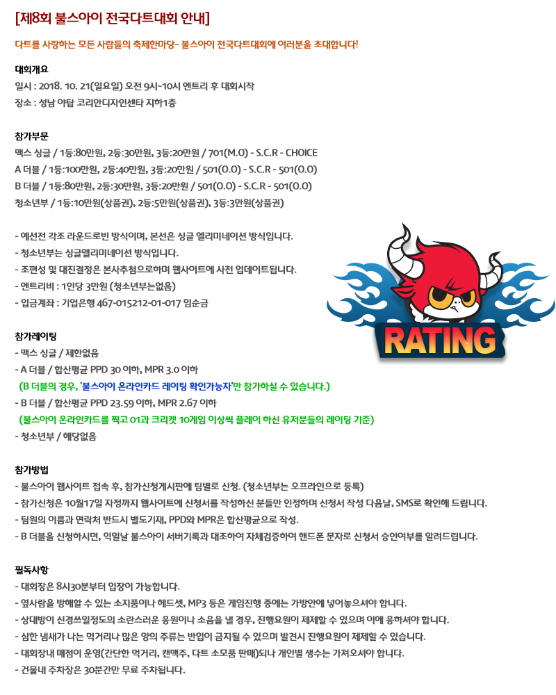 안내 | 제8회 불스아이전국다트대회 안내