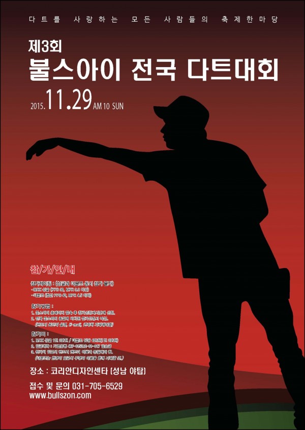 제3회 불스아이 전국다트대회 페이지 정보 작성자 불스아이 작성일17-12-13 20:30 조회12,239회 댓글0건 관련링크 이전글 다음글 목록 본문 일시 : 2015년 11월 29일(일요일) 장소 : 성남 야탑 코리아디자인센타 B1 부문 : 싱글즈 / 더블즈 이전글 다음글 목록